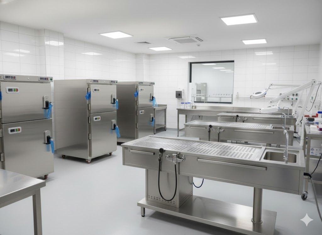 Hastane ve adli tıp için morg ekipmanları, otopsi/diseksiyon/gasil masaları ve paslanmaz üretim. Kalite, garanti, hızlı teslimat ve kurumsal teklif.