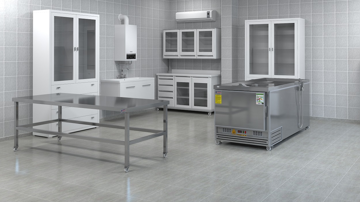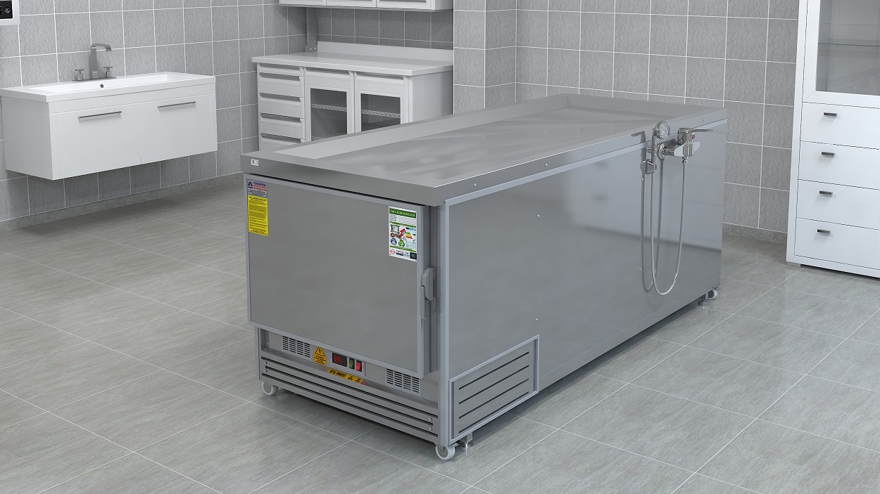 240 cm uzunluk, 92 cm yükseklik ve 88 cm genişlik ölçüleriyle hem geniş çalışma alanı sunar hem de çoğu morg odasına kolaylıkla yerleşir.