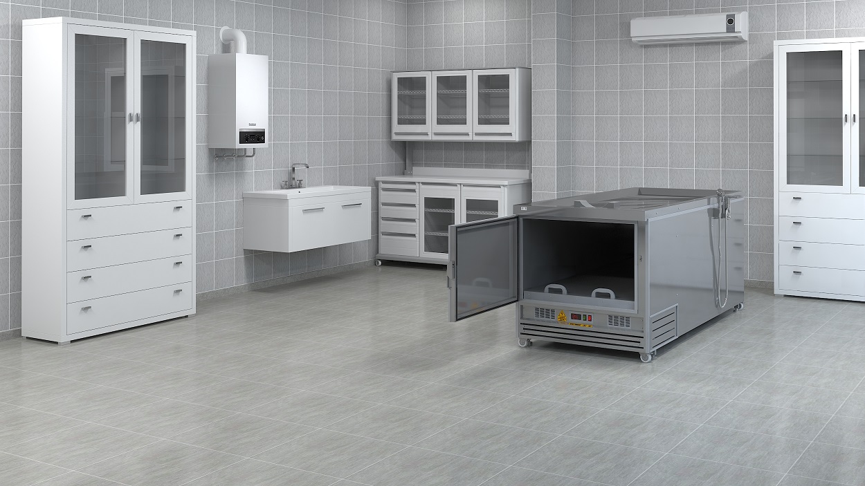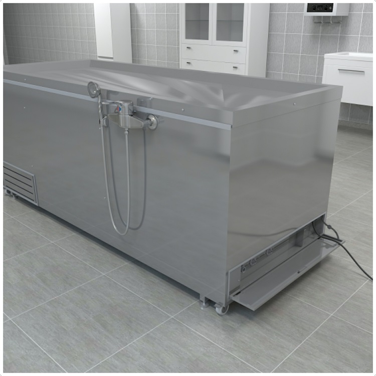 YS MORG 009 R-XLİNE STEEL, morg ve gasilhane projeleri için tasarlanmış, baştan yüklemeli ve cenaze yıkamalı profesyonel morg ünitesidir.